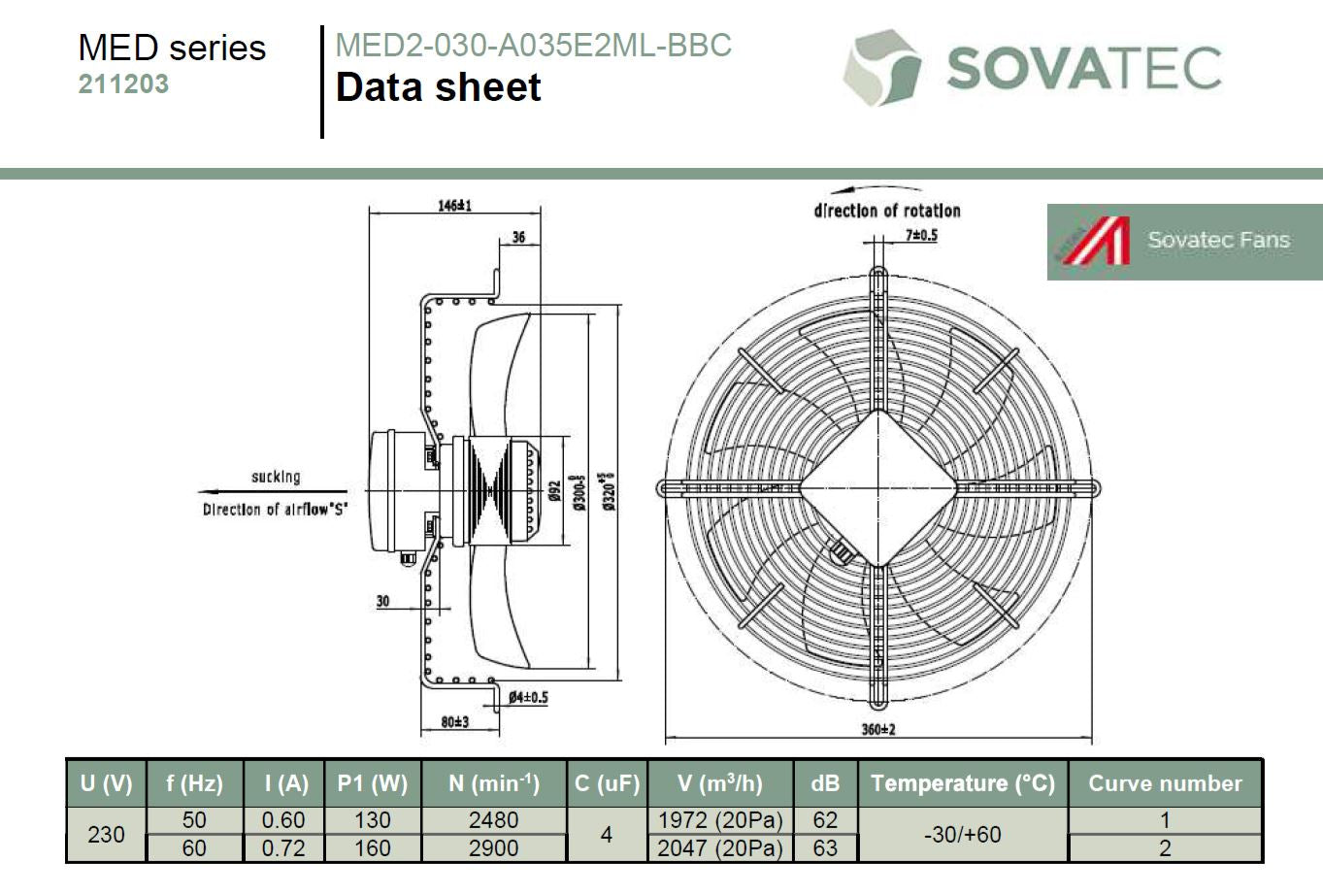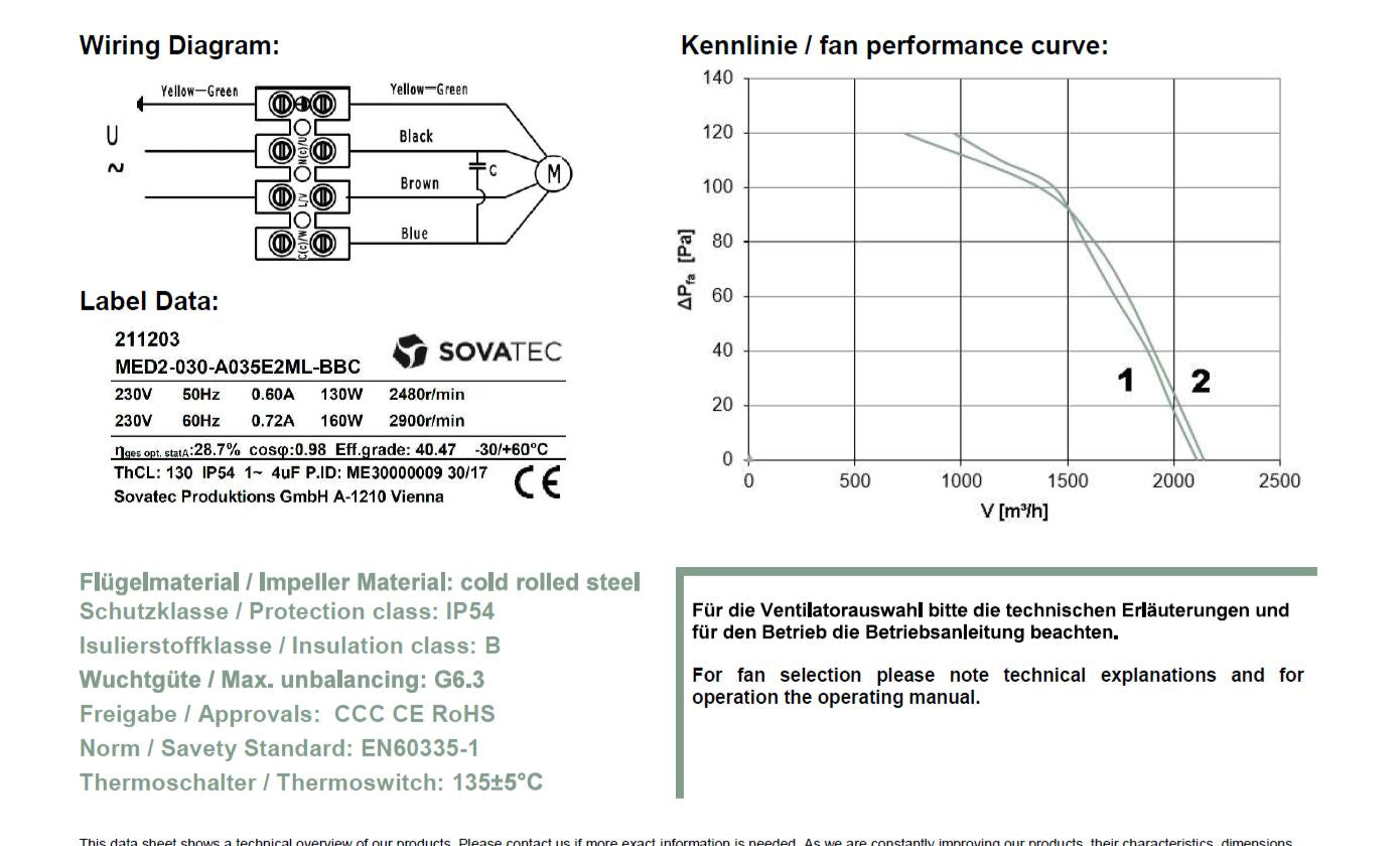 Fan kit Sovatech MED 211203 230V AC 2 pole Fan Kit