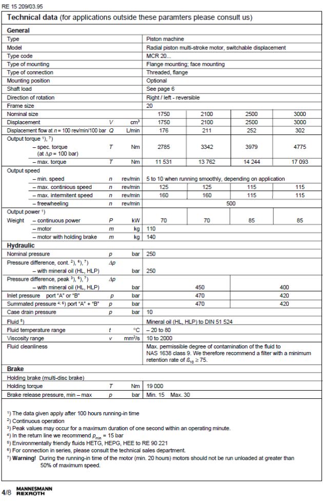 MCR20C2100F280Z31AOM2W 2100cc/rev Hydraulic motor MCR20